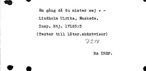 //// En gång då du mister mej v - //// i //// Lindholm Ulrika, Bnskede. //// Insp. Rtj. 17125:3 //// i //// - //// * //// (Texter till låtar.skämtvisor) //// RA INSP. ////