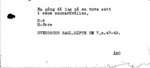 //// En gång då jag på en tuva satt //// ^^ i sena sommarkvällen, //// 5:6 //// SVENSSONS SAML.HÄFTE NB 7,s.47-48. //// i //// 1 , //// ---- ---_____----- ////