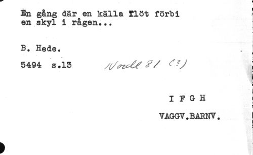 //// En gång där en källa Möt förbi ! //// en skyl i rågen... //// B. Hede. //// i //// 5494 s.13 ^ j //// i //// < //// t- //// I F G H i //// s //// h //// VAGGV.BARNV. I //// ! ////