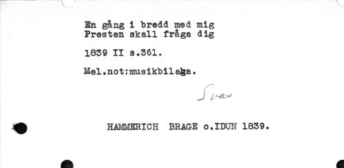 //// En gång i bredd med mig //// Presten skall fråga dig //// 1859 II s.361. //// Mel.not:masikbila&a. ////