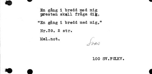 //// En gång i bredd med mig //// presten skall fråga di&, //// "En gång i bredd med mig." //// Nr.39. 2 str. //// Mel.not. //// 100 SV.FCLKV. ////