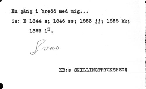 //// - //// En gång i bredd med mig... //// * ' ' //// Se: E 1844 s; 1846 ss; 1853 jj; 1858 kk; //// 1865 l3, ^ //// L //// } //// 5 //// ] //// KB: s SKILLINGTRYCKSREG? ! //// t //// ! //// < ////