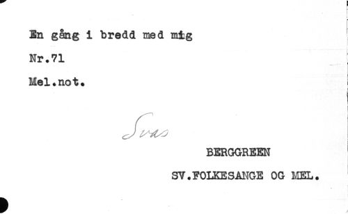 //// t //// I* //// i //// r //// En gång i bredd med mig //// Nr. 71 //// Mel* no t* //// t //// ! //// i //// ! //// i //// t //// BERGGREEN //// SV.FOLKESANGE OG MEL. ////