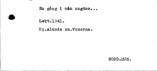 //// En gång i m&n ungdom... //// Lekt.1941. //// Up.Alunda sn.Voxorne. //// - r //// a //// t ////