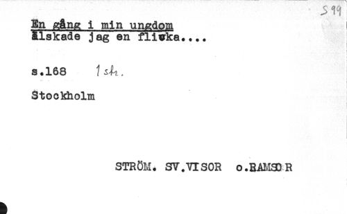 //// En gång i min ungdom ) //// älskade j ag en flivka.... //// : //// f //// ' . ii //// i' //// * < //// ) //// s.168 //// Stockholm //// - ////