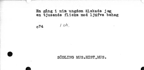 //// En g&ng i min ungdom älskade j ag //// en tjusande flicka med lj^fva behag //// . //// - //// - //// F //// - //// ^ SÖDLING MUS.HIST.MUS. //// r * ////