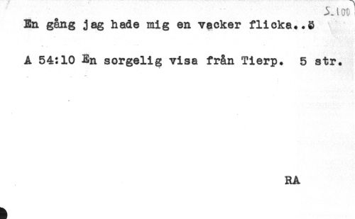 //// 3JW //// En gång jag hade mig en vacker flicka*.8 //// ** //// A 54:10 En sorgelig visa från Tierp. 5 str. ////