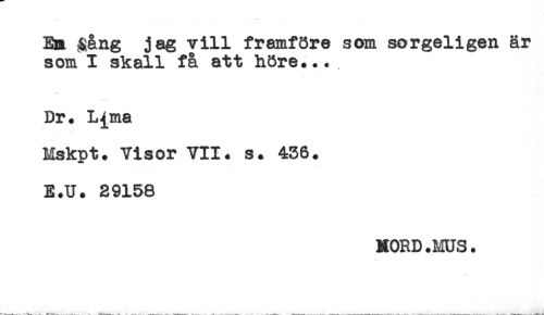 //// Em &&ng jag vill framföra som sorgeligen är //// som I skall få att höre... //// Dr. L{ma //// Mskpt. Visor VII. s. 436. //// E.U. 29156 ////