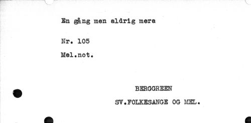 //// En gång men aldrig mera //// Nr. 105 //// Mel.not. //// ^ EERGGREEN //// SV.FOLKESANGE OG MEL. ////