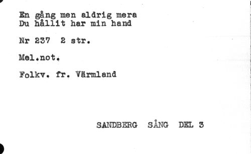 //// ! //// [ //// En gång men aldrig mera //// Du hållit har min hand //// t //// Nr 237 2 str. //// Mel.not. //// Folkv. fr. Värmland //// t //// ) //// ) ////