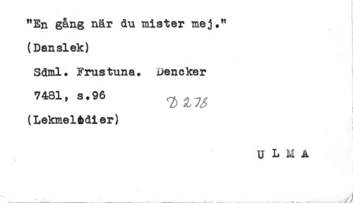 //// "En gång när du mister mej." //// (Danslek) //// Sdml. Frustuna. Dencker //// 74S1,=.96 //// (LekmelAdier) //// i //// U L M A ////