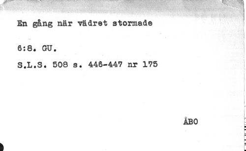 //// En gång när vädret stormade //// - //// 6:8. GU. //// . " 4 //// f ... ^ //// S.L.S. 508 s. 446-447 nr 175 i //// i //// i //// . //// t ////