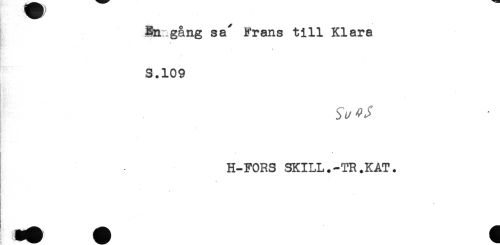 //// Hnragång sa Frans till Klara //// ^ . ' -- //// S.109 //// H-FORS SKILL.-TR.KÅT. ////