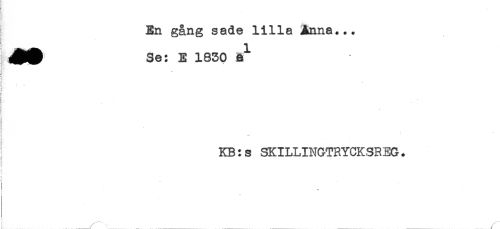 //// En gång sade lilla Anna... //// } Se: E 1830 a*** //// i //// S' //// * .' * //// f //// [ //// i //// ) //// } //// i //// t //// ! //// i //// ! //// KB:s SKILLINGTRYCKSREG. //// i ////