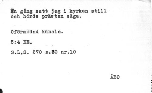 //// 3n gång satt jag i kyrkan still //// och hörde prästen säga. //// i //// i //// ! //// * ' ! //// ! //// Oförmodad känsla. //// t //// 5:4= EE. //// S.L.S. 270 s.SO nr.10 //// : //// i //// C //// : ////