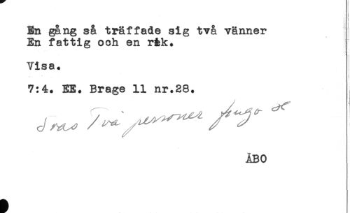 //// i //// ! //// En gång så träffade sig två vänner //// En fattig och en rék. //// Visa. //// 7:4. EE. Brage 11 nr.28. //// ÅBO ////