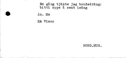 //// En gång tjänte jag bondedräng: //// bitti oppe å sent isäng //// i ^ Ån. Ho //// } //// HÅ Visor //// ! //// ) ////