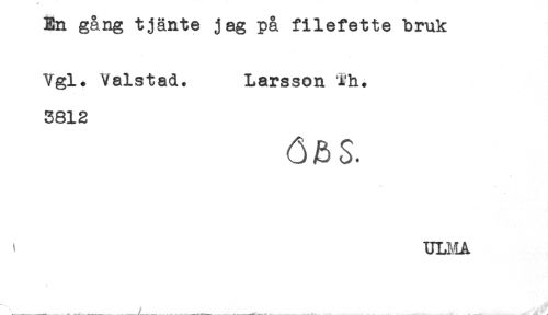 //// En gång tjänte jag på filefette bruk //// Vgl. Valstad. Larsson 'i'h. //// 3812 //// ÖBS. ////