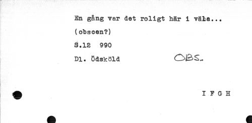 //// En gång var det roligt här i väla... //// (obscen?) //// S.12 990 //// Dl. Odsköld (^BS- //// * //// ^ I F G H ////