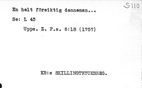 //// En helt försiktig danneman... ^S^t //// Se: L 43 //// . i //// < ) //// * ..... //// Upps. Z. P.s. 6:18 (1757) //// t //// t //// < //// < ////