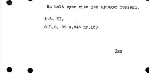 //// En helt nyer visa jag sjunger försann, //// 1:6. Kl. //// . .- //// . * * //// S.L.S. 29 s.246 nr.130 //// * //// ÅBO ////