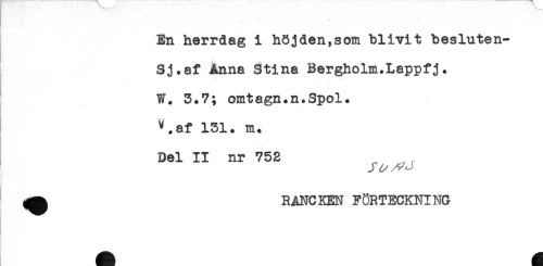 //// ^ .. ^ ..*. . - ... J, ** - //// En herrdag i höjden,som blivit besluten- //// Sj.af Anna Stina Bergholm.Lappfj. //// W. 3.7; omtagn.n.Spol. //// ^.af 131. m. //// I - - - //// Del II nr 752 ^ ^ r ////