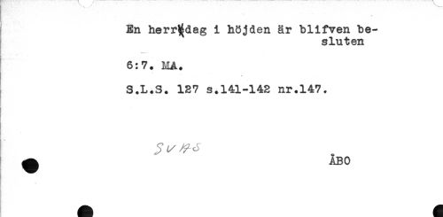 //// En herredag i höjden är blifven be- //// sluten //// 6:7. MA. //// S.L.S. 127 s.141-142 nr.147. //// ^ ABO ////