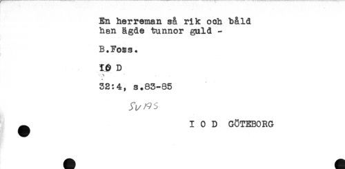 //// ' ' * * t ' ' ' * ' //// En herreman så rik och båld //// han ägde tunnor guld - //// B.Foss. //// 13 D //// 32:4, s.83-85 //// .ft/^ //// ^ I 0 D GOTEBORG ////