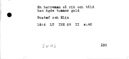 //// A . - //// En herreman så rik och båld //// han ägde tumnor guld //// Gustaf och Elin //// 10:6 LT INE 29 II s.42 //// } ////