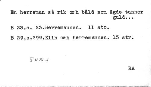 //// B 25,s. 25.Herremannen. 11 str. //// B 29,s.299.Elin och herremannen. 15 str. //// RÅ ////