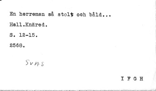 //// i //// i //// En herreman så stolt och båld... //// ! //// Hall.Knäred. //// t //// S. 12-15. //// < //// 2568. //// i //// : //// i //// I F G H ////