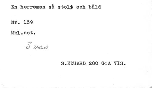 //// En herreman så stol# och båld //// -i - //// Nr. 139 //// i //// ! //// Mel.not. //// S.EDUARD 200 G:A VIS. //// .......S - ////