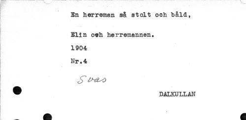 //// ____ //// H- E' . - .. -. _ . //// t ' ' ' //// En herreman så stolt och båld, //// Elin ovh herremannen. //// 1904 //// Nr. 4 //// ^ DALKULLAN //// . ////