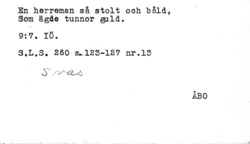//// En herreman så stolt och båld, //// Som ägde tunnor gild. //// ^-* - //// 9:7. 10. //// : //// S.L.S. 260 s*-123-127 nr.13 //// ÅBO //// ^ ^ . ^ ^......: - . - . .. .-..-.<r. _____^ .... _____..... ////