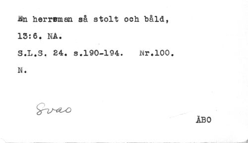 //// jMin herreman så stolt och båld, //// 13:6. NA. //// S.L.S. 24. s.190-194. Nr.100. //// N. //// ÅBO ////