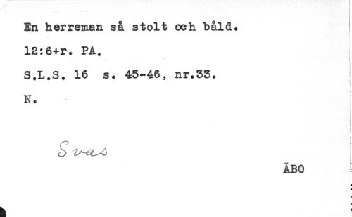 //// En herreman så stolt och båld. //// 12:6+r. PA. //// " ' . ! //// S.L.S. 16 s. 45-46, nr.35. //// : //// N. //// t //// i //// i //// < //// t //// ÅBO [ //// i //// H //// H //// E ////
