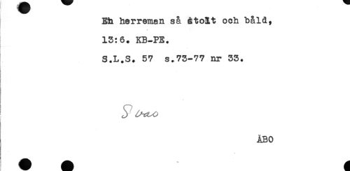 //// Eh herreman så åto&t och båld, //// 13:6. KB-PE. //// S.L.S. 57 s.73-77 nr 33. //// t[ //// t; //// ÅBO ////