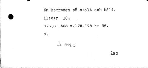 //// En herreman sa stolt och båld. //// . //// # ll:6+r 10. //// i . - //// ] //// S.L.S. 508 s.175-178 nr 58. //// N. //// ÅBO ////