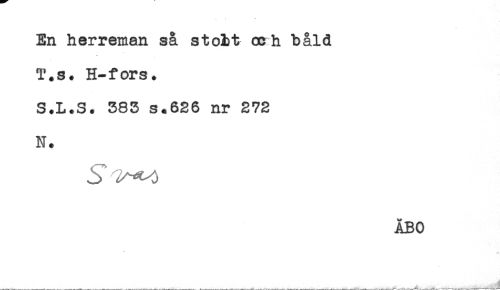//// En herreman så stobt cc h båld //// T.s. H-fors. //// S.L.S. 383 s.626 nr 272 //// N. //// ÅBO ////