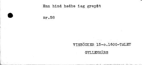 //// Enn hind hadhe iag grep$t //// * nr.58 //// * //// t //// YISBOCKER 15-O.1600-TALET //// GYLLEm^ÄRS ////