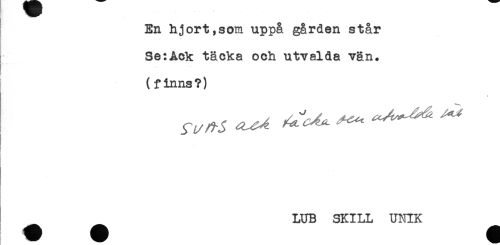//// En hjort,som uppå gården står //// Se:Ack täcka och utvalda vän. //// (finns?) //// LUB SKILL UNIK ////