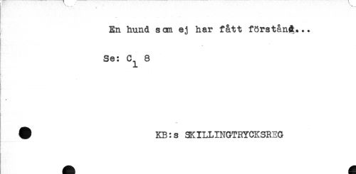 //// En hund son ej har fått förstånå. //// Se: C 8 //// p //// # KB:s SKILLINGTRYCKSREG ////