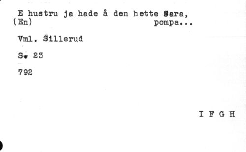 //// E hustru ja hade å den hette Sara, //// (En) pompa... //// Vml. Sillerud //// j //// S^ 23 //// 792 //// I F G H ////