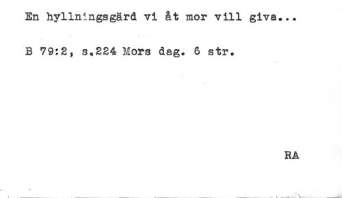 //// En hyllningsgärd vi åt mor vill giva... //// ' ... //// B 79:2, s.224 Mors dag. 6 str. //// RA //// -- ... * ////