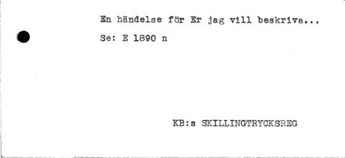 //// En händelse för Er jag vill beskriva... //// ? //// < //// t //// ^ Se: E 1890 n //// i //// j //// < //// i //// ! //// i //// ! //// KB:s SKILLINGTRYCKSREG //// : ////