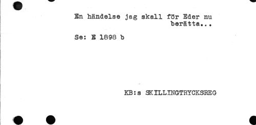 //// En händelse jag skall för Eder nu //// berätta... //// Se: E 1898 b //// KB:s SKILLINGTRYCKSREG ////