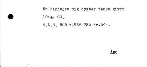 //// En händelse mig dyster tanke giver //// ^ 10:4. GU. //// - - //// S.L.S. 508 s.738-739 nr.294. //// i //// F //// ÅBO //// t' ////
