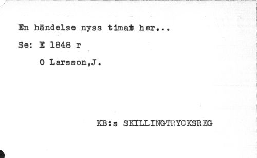 //// En händelse nyss timai har... //// i //// f t //// Se: E 1648 r //// ^ ! //// < //// ) //// O Larsson,J. , //// i //// j //// KB:s SKILLINGTRYCKSREG ////