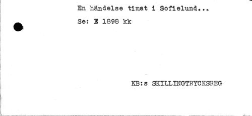 //// En händelse timat i Sofielund..* //// ^ Se: E 1898 kk //// it //// KB:s SKILLINGTRYCKSREG ////