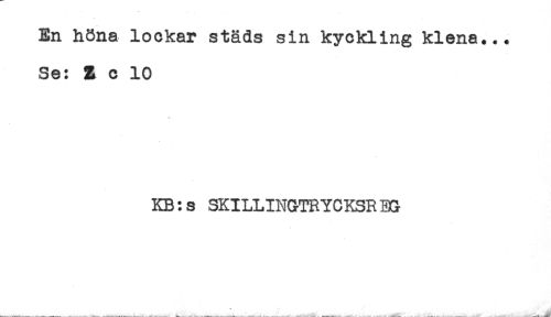 //// En höna lockar städs sin kyckling klena... //// Se: Z c 10 //// KB:s SKILLINGTRYCKSREG ////